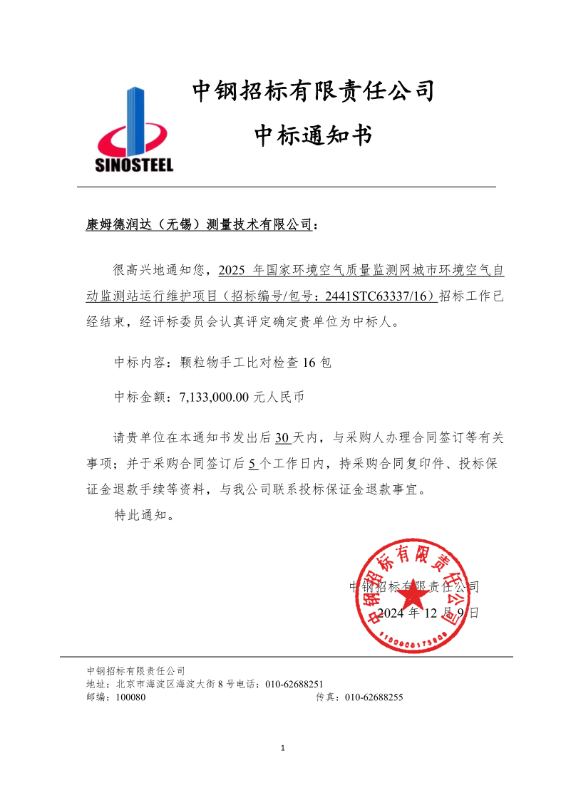 近日,隨著中國(guó)環(huán)境監(jiān)測(cè)總站2025年國(guó)家環(huán)境空氣質(zhì)量監(jiān)測(cè)網(wǎng)城市環(huán)境空氣自動(dòng)監(jiān)測(cè)站運(yùn)行維護(hù)項(xiàng)目的落地,康姆德潤(rùn)達(dá)的名字再次成為行業(yè)焦點(diǎn)??的返聺?rùn)達(dá)以最高分中標(biāo)顆粒物手工比對(duì)項(xiàng)目16包,這標(biāo)志著公司連續(xù)四期成為國(guó)家網(wǎng)自動(dòng)監(jiān)測(cè)站運(yùn)行維護(hù)項(xiàng)目的第一梯隊(duì),全心全力為環(huán)境空氣質(zhì)量監(jiān)測(cè)貢獻(xiàn)出自己的一份力量。