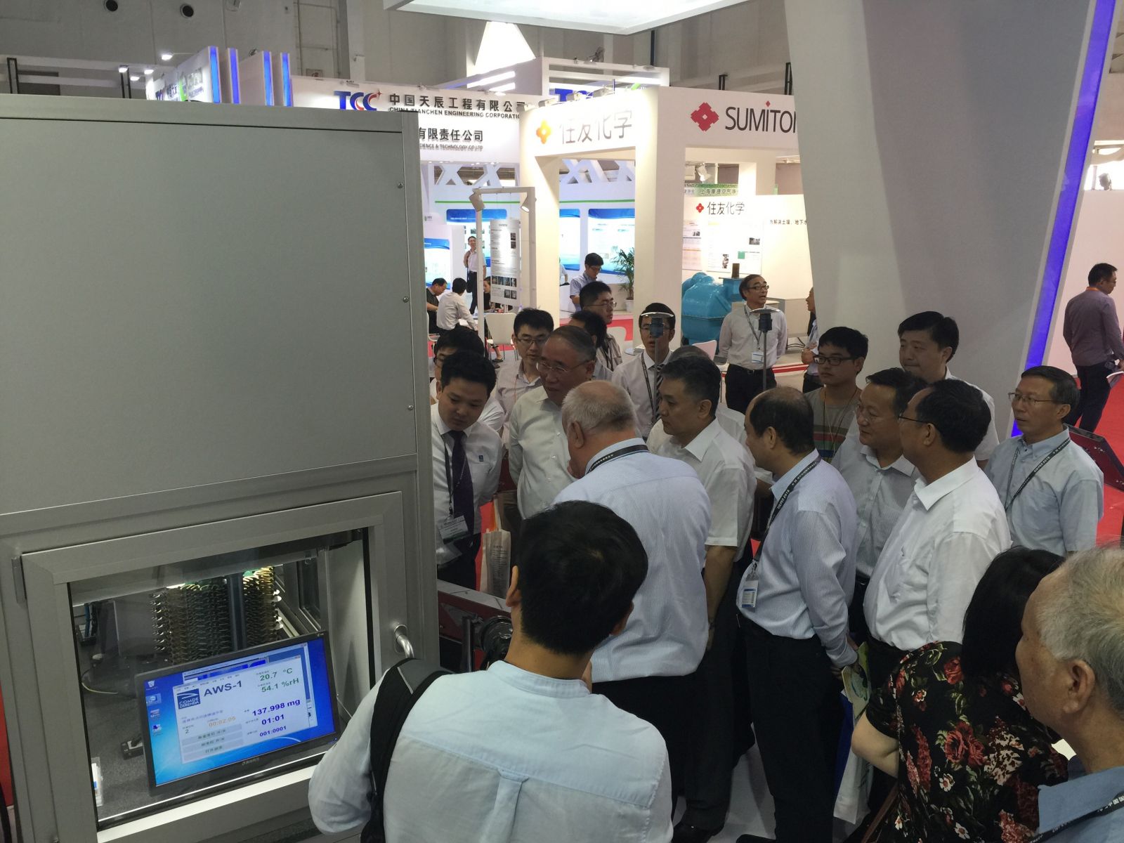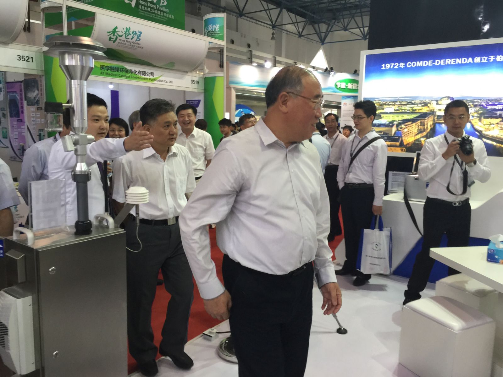 9日上午, 全國人大環(huán)資委副主任委員王云龍、全國政協(xié)人口資源環(huán)境委員會副主任委員解振華等在吳曉青副部長的陪同下蒞臨 康姆德潤達展臺參觀。鄧楠總經(jīng)理向王云龍、解振華和吳曉青一行簡要匯報了公司發(fā)展的有關(guān)情況,重點介紹了公司的旗艦產(chǎn)品AWS-1濾膜自動稱重系統(tǒng)。幾位領(lǐng)導(dǎo)非常關(guān)心作為德資企業(yè)的德潤達公司在中國的發(fā)展,并指出,德潤達公司產(chǎn)品中的PM2.5量值溯源數(shù)據(jù)質(zhì)控 類產(chǎn)品,正是中國環(huán)境行業(yè)現(xiàn)在所亟需的。