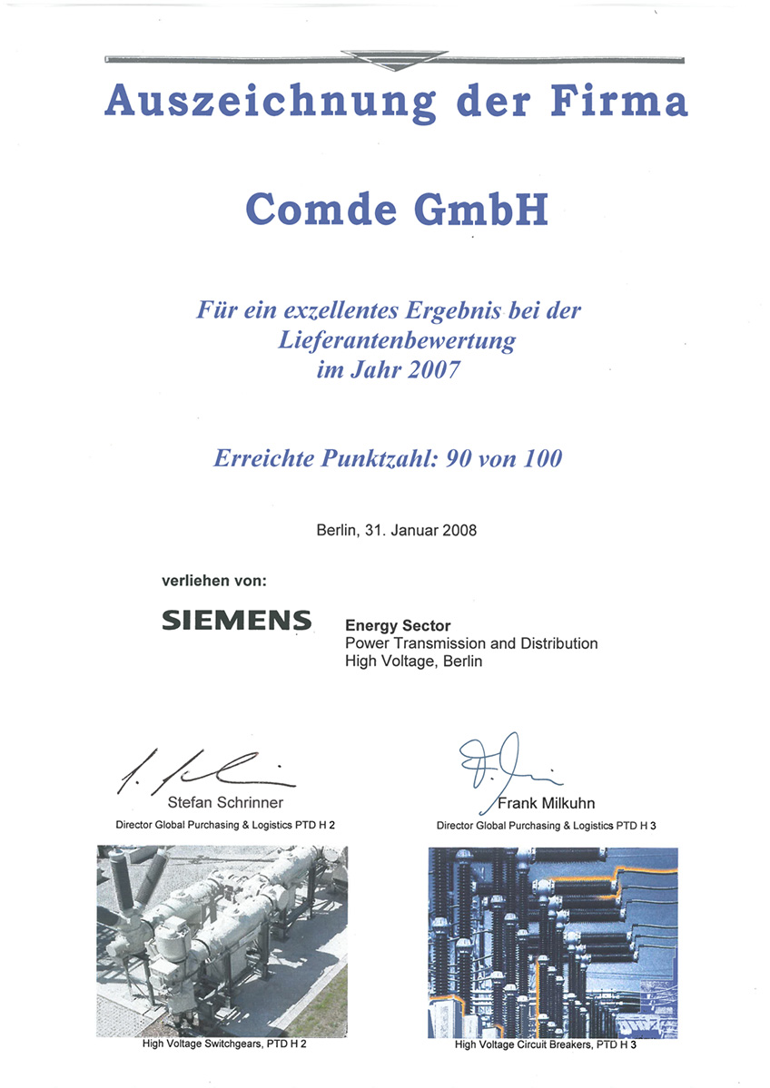 2007年度供應(yīng)商優(yōu)秀評(píng)級(jí)證書